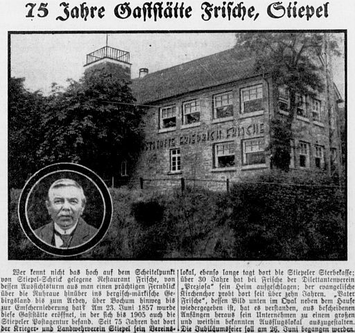 weitere Quelle: Bochumer Anzeiger vom 23.06.1932 (75 Jahre Gaststätte Frische Stiepel)