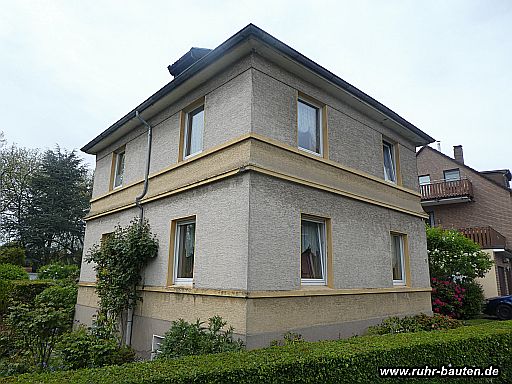 Architekt: Hermann Halstenbach, Bochum Ausführung: Bauherr: Hermann Halstenbach (Architekt, Gebäude Quellenweg), Bochum; August Fern (Maurer, Gebäude Ganghoferstraße), Bochum Besitzer: